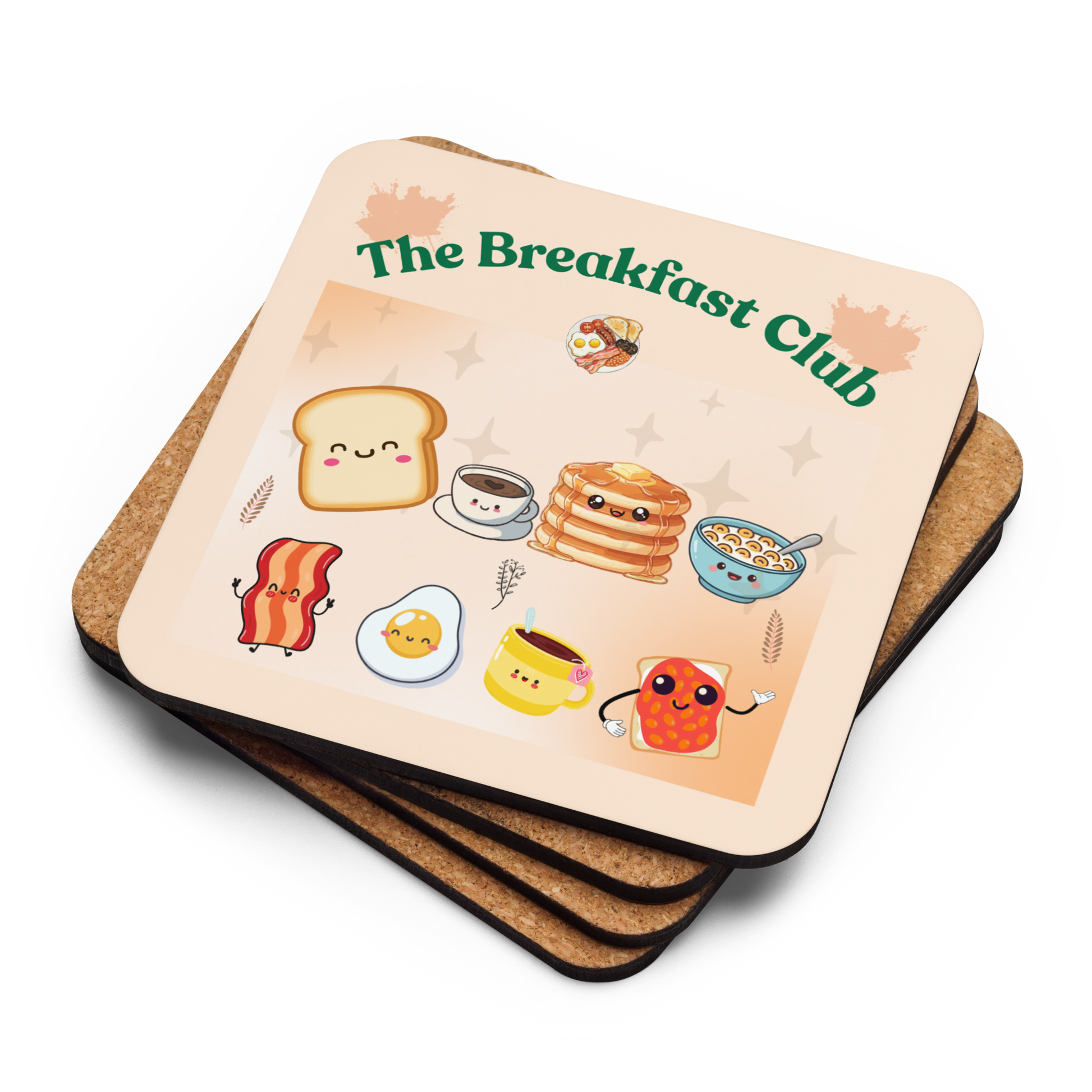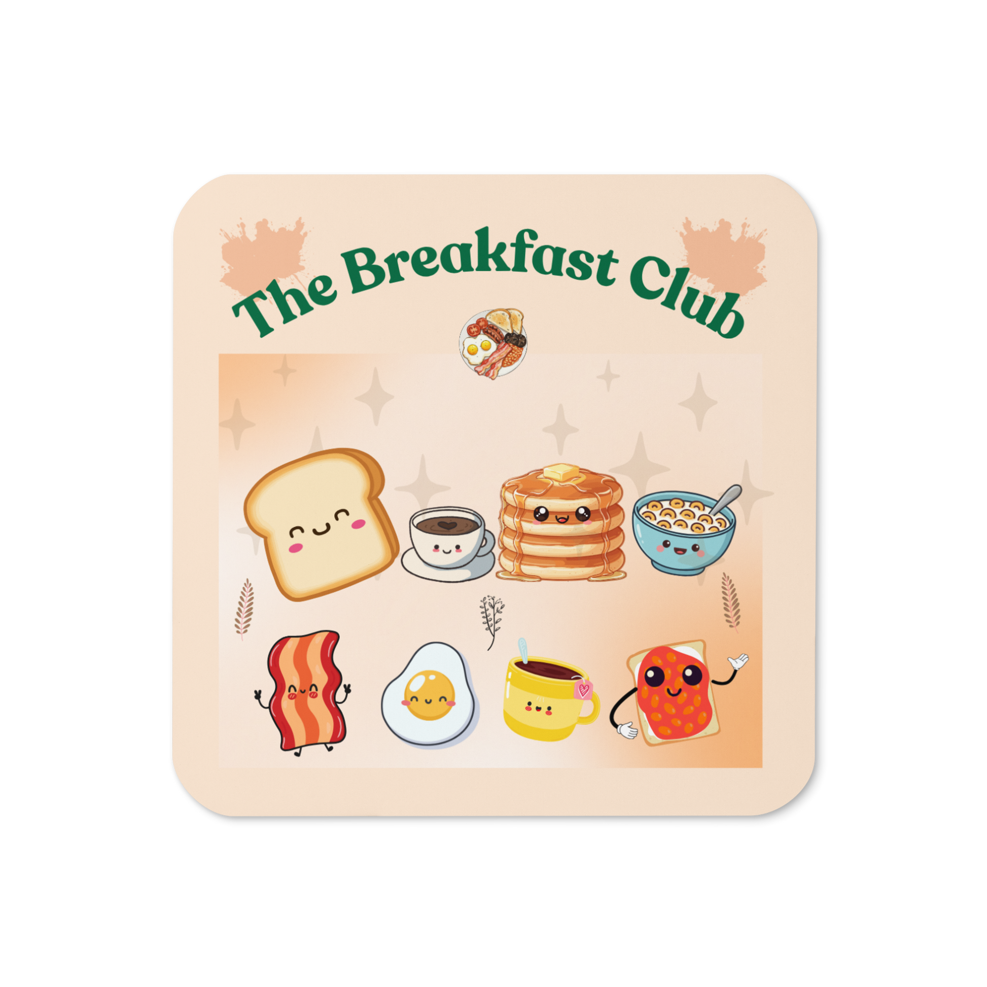Start your morning right with the Breakfast Club Cork Back Coaster — a cute and funny kawaii design featuring everyone’s favorite breakfast foods! 🍳🥑🥞
